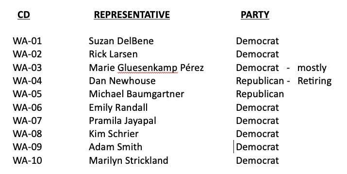 Safe Democrat: WA-01, 02, 06, 07, 09, 10